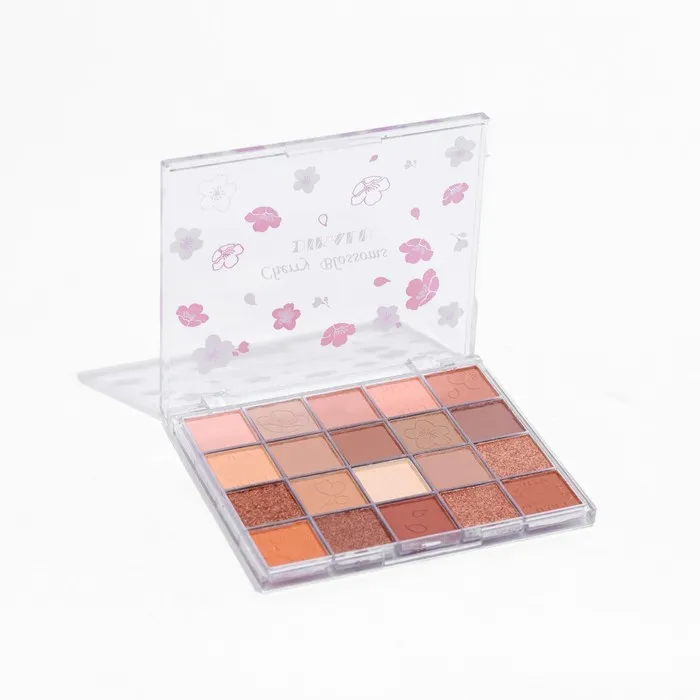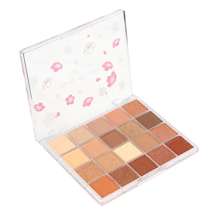 Палетка теней имеет удобную форму и хороший выбор цветов, в том числе блестящих. Тени хорошо пигментированы, не пылят, не скатываются, отлично тушуются и наносятся на веки.