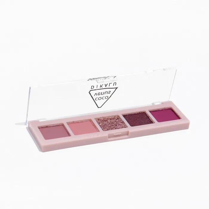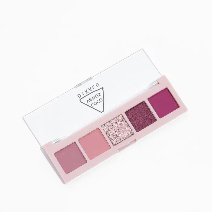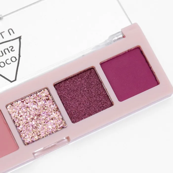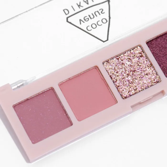 Палетка теней имеет удобную форму и хороший выбор цветов, в том числе блестящих. Тени хорошо пигментированы, не пылят, не скатываются, отлично тушуются и наносятся на веки.