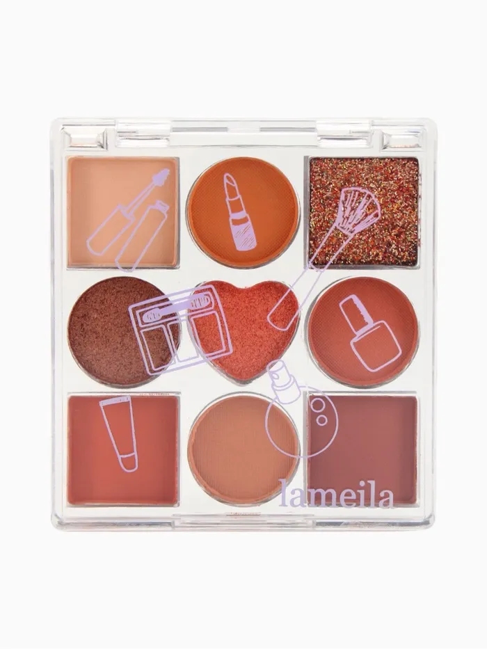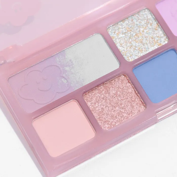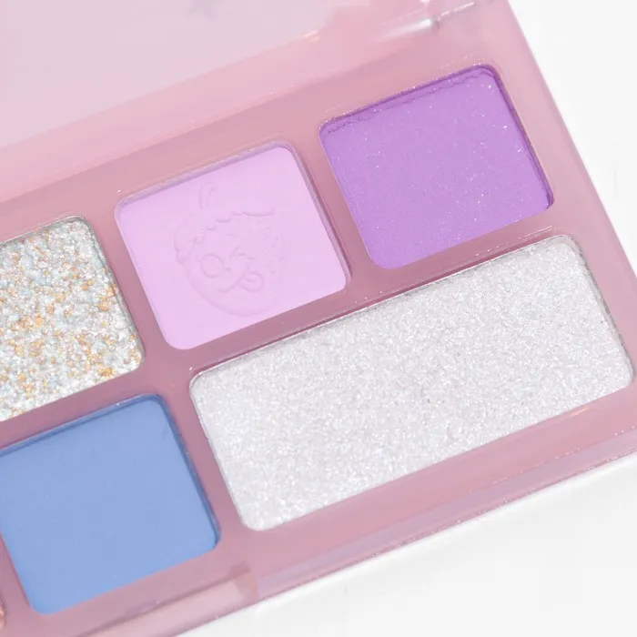 Палетка теней имеет удобную форму и хороший выбор цветов, в том числе блестящих. Тени хорошо пигментированы, не пылят, не скатываются, отлично тушуются и наносятся на веки.