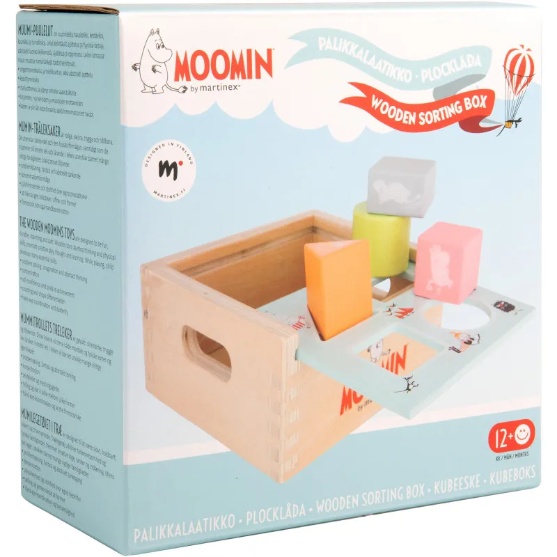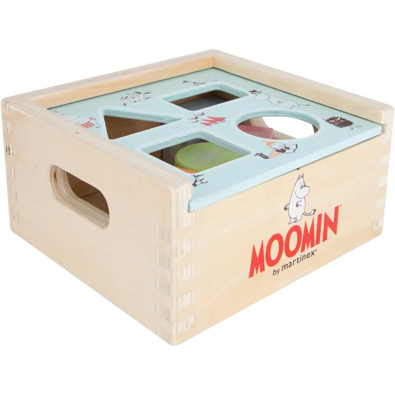 Классическая деревянная игрушка с темой Муми-троллей! Квадратная деревянная коробка с выдвижной крышкой, в которой четыре отверстия: треугольник, прямоугольник, квадрат и круг. В комплект входят четыре блока пастельных цветов, украшенные изображениями Муми-троллей.