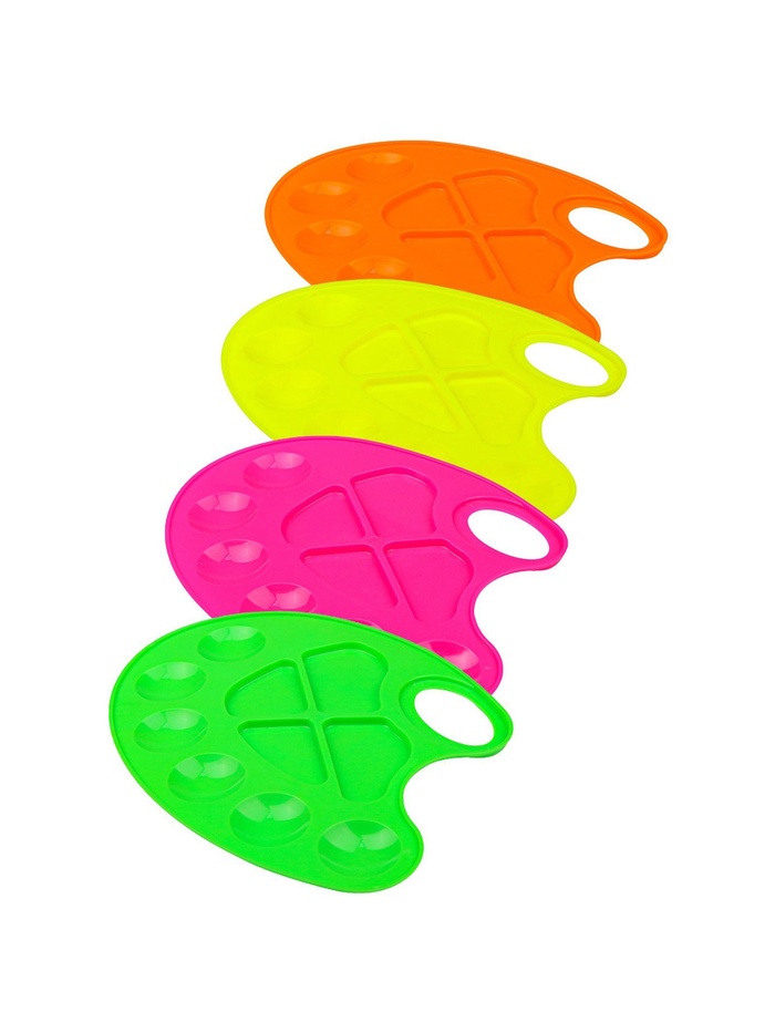 Палитра художника Calligrata овальной формы – отличный инструмент для смешивания красок и получения новых цветов. Она представлена в размере 23,2 х 16,9 мм и имеет 10 ячеек. Ассорти из 4 неоновых: салатовый, лимонный, морковный. фуксия. Легкая и практичная, имеет отверстие для руки удобного хвата. Палитра для рисования является незаменимым атрибутом как для начинающих художников, так и для профессиональных творцов.