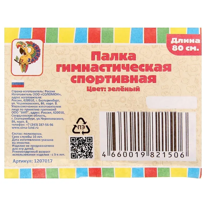 Палка гимнастическая 70 см, зелёная — Характеристики