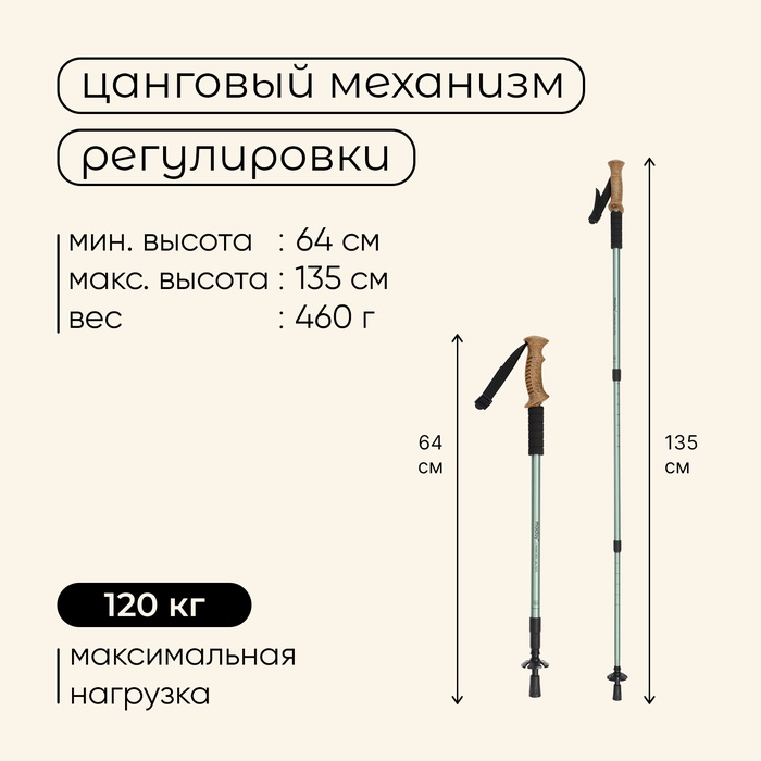 Палка трекинговая maclay Alu 500, телескопическая, 1 шт. — Характеристики