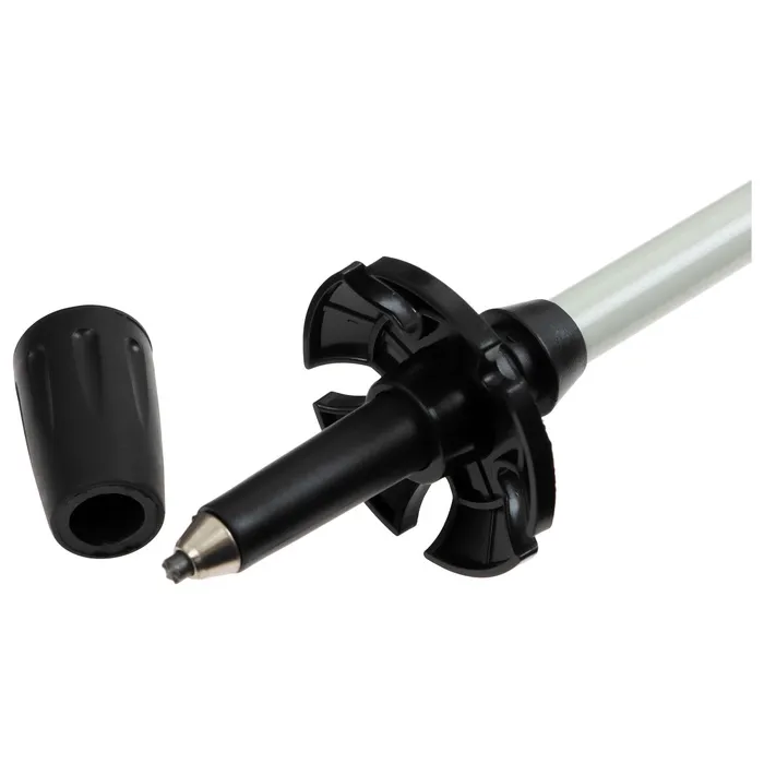 - Модель оснащена ограничительным кольцом для предотвращения проваливания палок в мягкую почву и застревания между камнями.