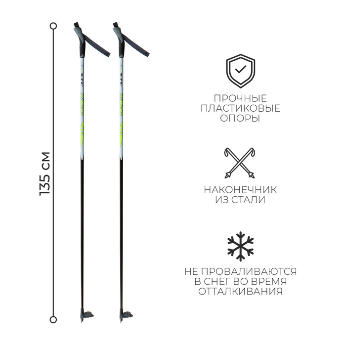 Палки лыжные стеклопластиковые, длина 135 см, цвета МИКС — Характеристики