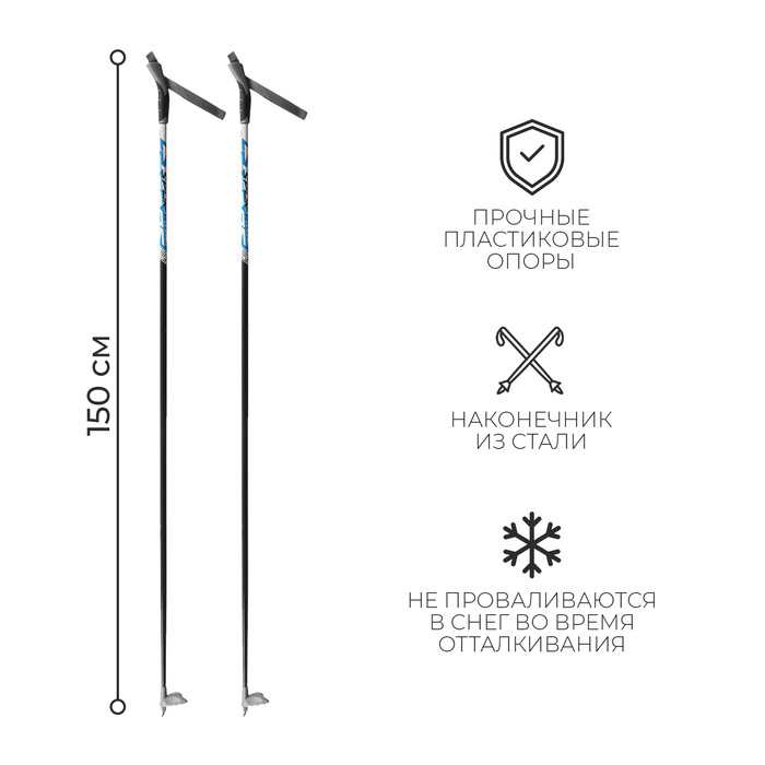 Палки лыжные стеклопластиковые, длина 150 см, цвета МИКС — Характеристики
