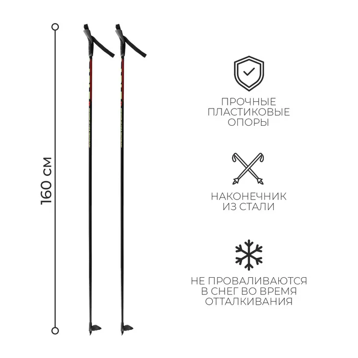 Палки лыжные стеклопластиковые, длина 160 см, цвета МИКС — Характеристики