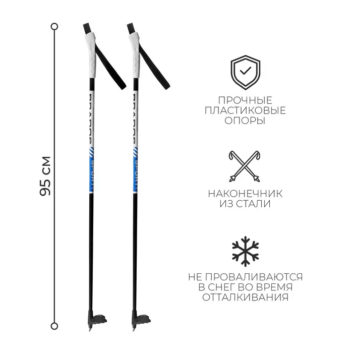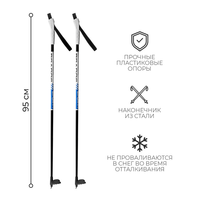 Палки лыжные стеклопластиковые, длина 95 см, цвета МИКС — Характеристики