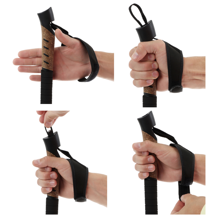 - Темляк огибает запястье, обеспечивая опору для руки и предотвращая потерю палки во время движения. Конструкция петли позволяет отрегулировать необходимую длину.