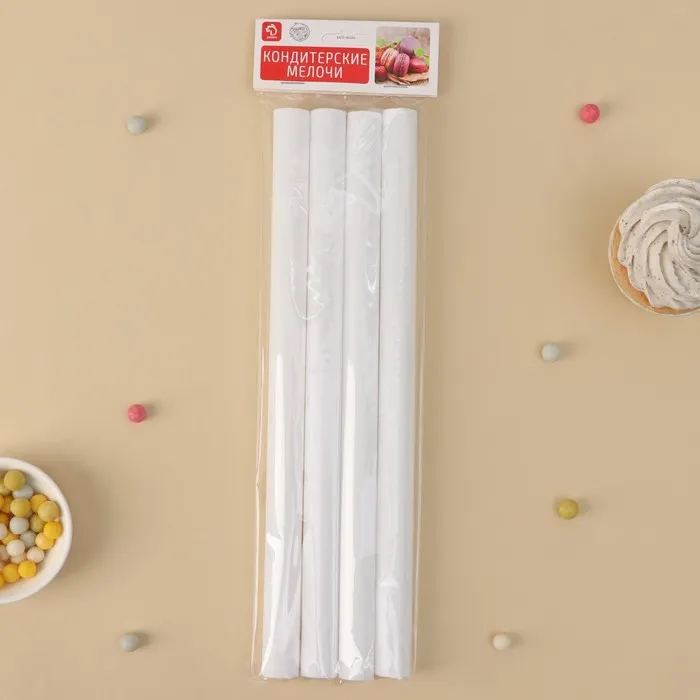 Палочки-дюбели для кондитерских изделий Доляна, d=1.8 см, 30 см, набор 4 шт., пластик, белые — Характеристики