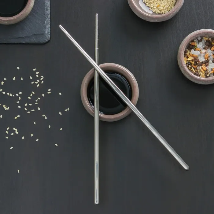 Многоразовые палочки для суши выполнены из высококачественной нержавеющей стали для пищевой отрасли.
