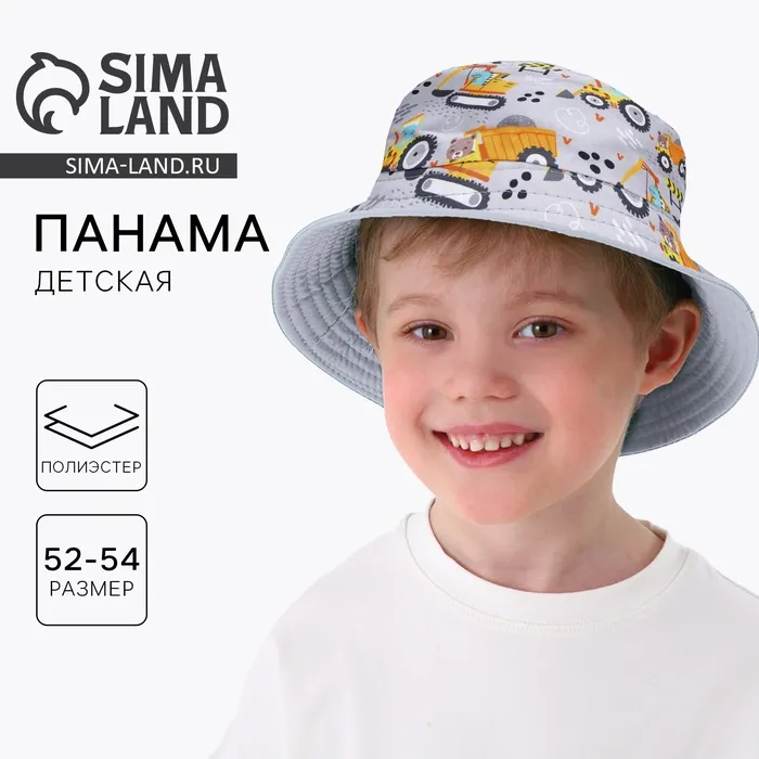 Панама детская для мальчика «Трактор», серая, р-р 52-54 — Характеристики