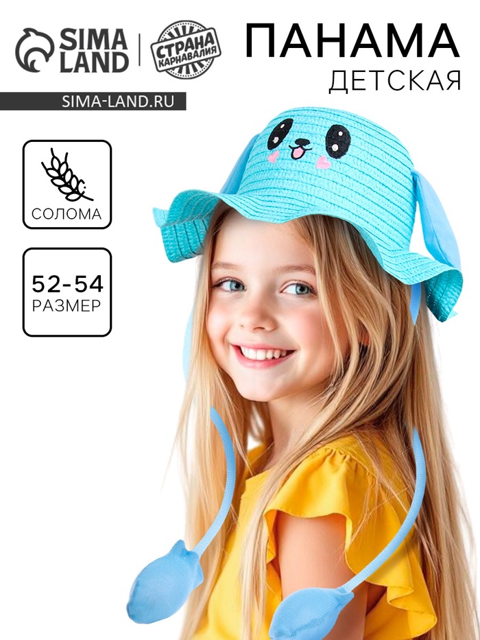 Панама детская соломенная «Пандочка», р-р 54, 2-6 лет