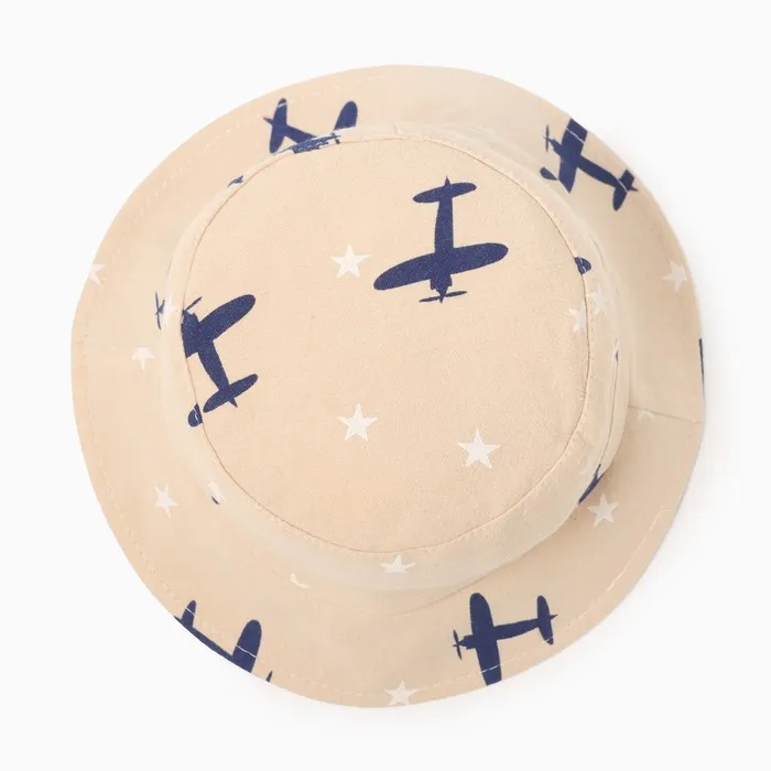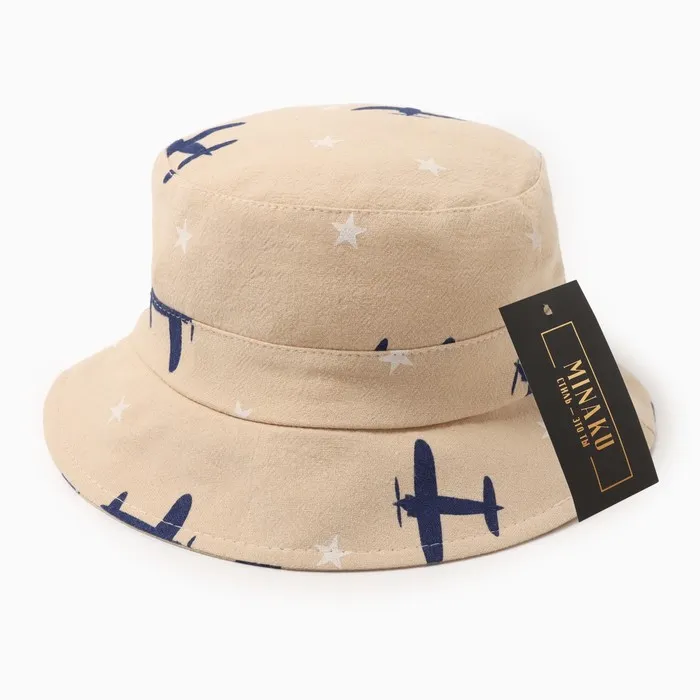 Панама детская MINAKU «Самолётики», размер 48-50, бежевая