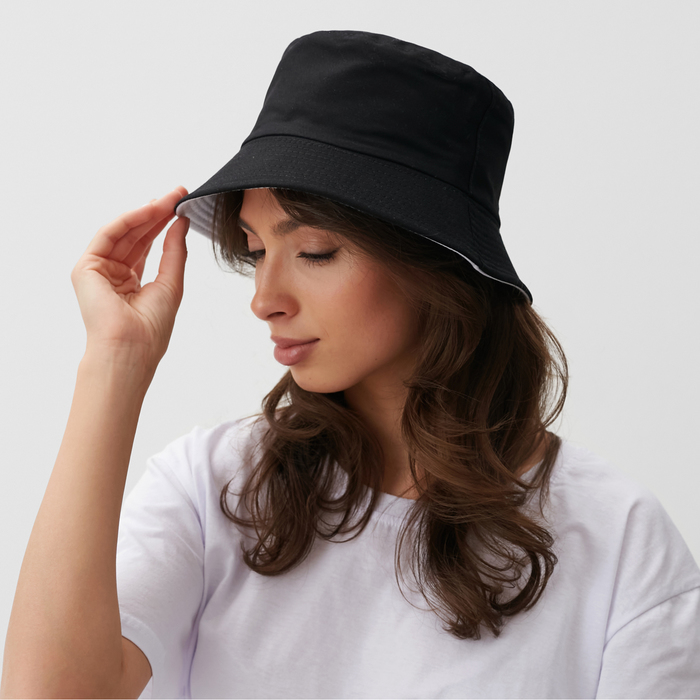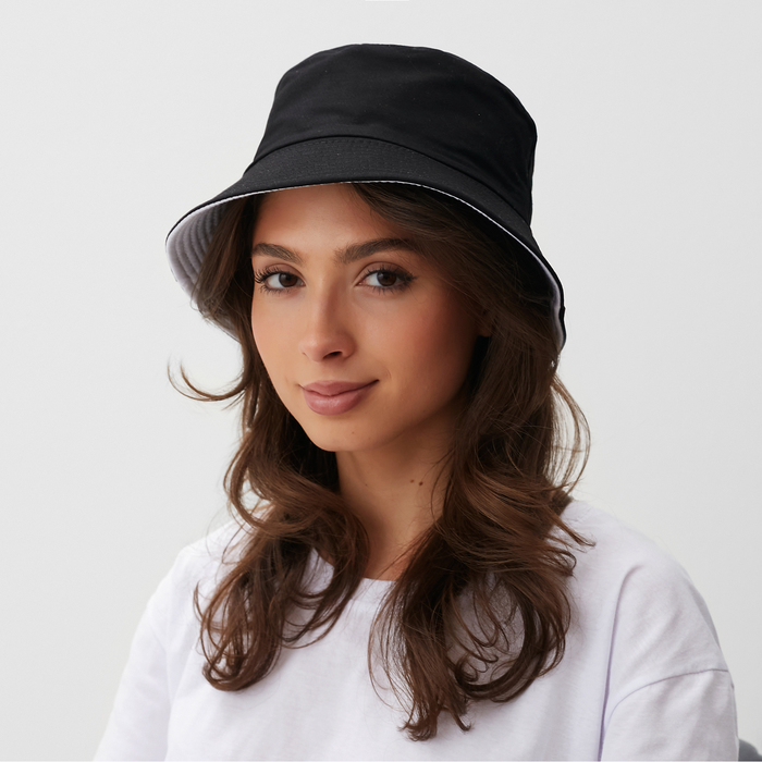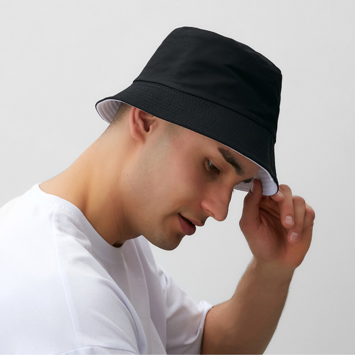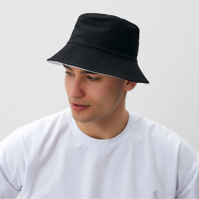 Панама однотонная, двухсторонняя, цвет черный/белый, р-р 56-58 — Характеристики