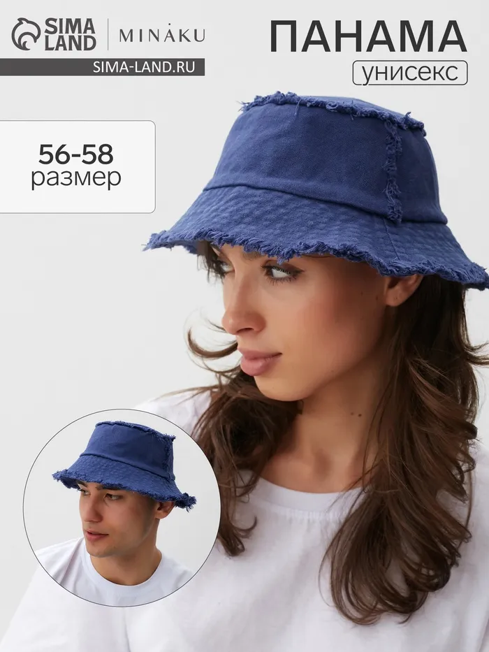 Панама женская джинсовая MINAKU с необработанными краями, синяя, размер 56-58 — Характеристики