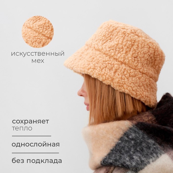 Панама зимняя двусторонняя MINAKU, цвет песочный, р-р 56-58 — Характеристики