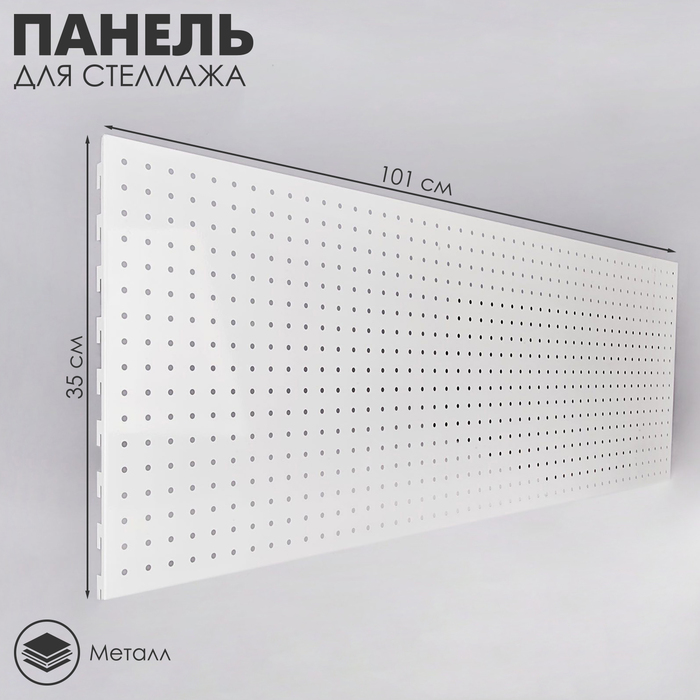 Панель для стеллажа, 35×101 см, перфорированная, шаг 2,5 см, цвет белый — Характеристики