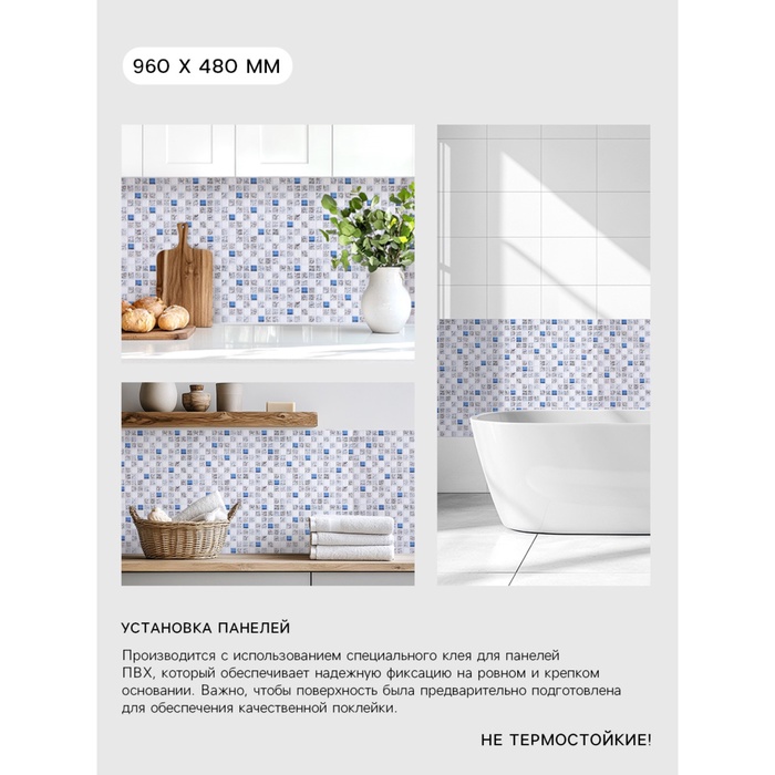 Панель ПВХ мозаика «Коллаж», голубой, 480×960 мм — Характеристики