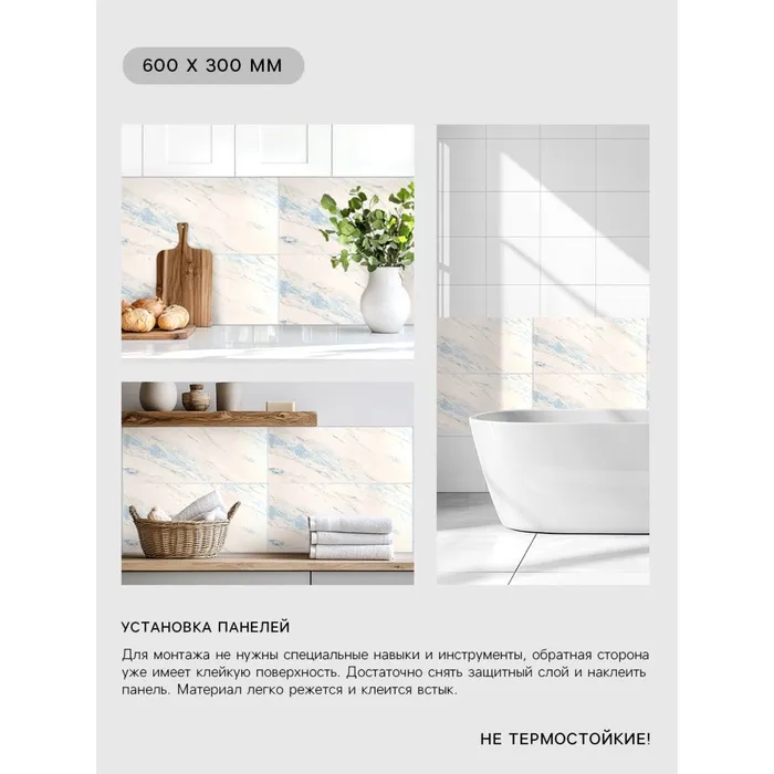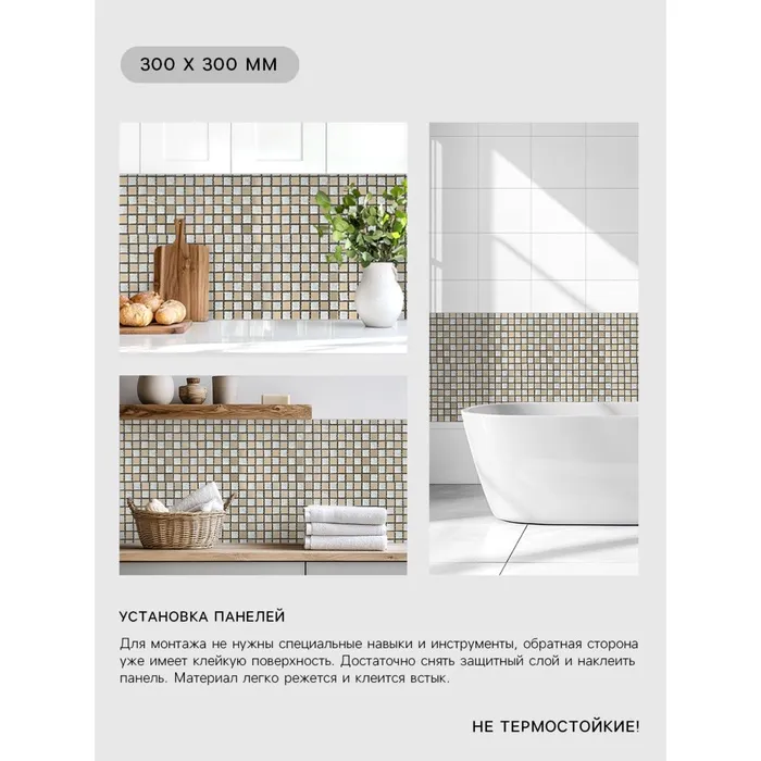 Панель ПВХ самоклеящаяся TAKE IT EASY «Плитка», 700×770 мм, цвет бежевый — Характеристики