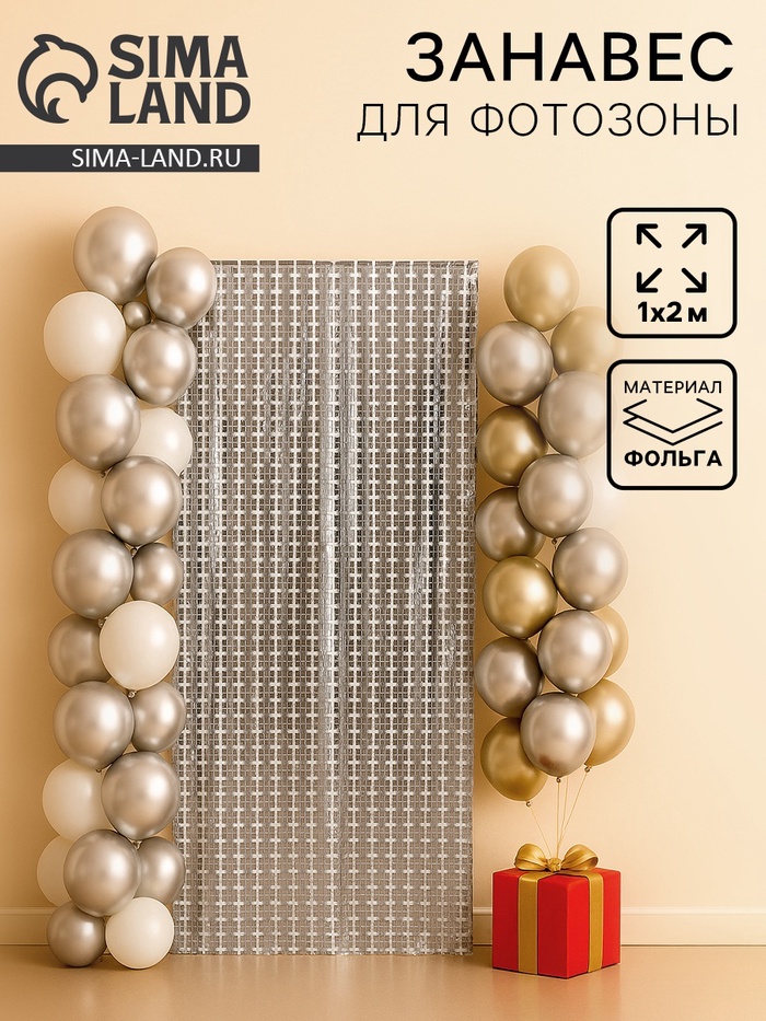 Занавес для фотозоны «Квадраты», серебристый 1×2 м