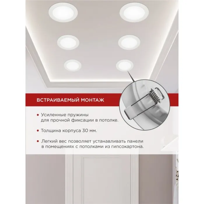 Панель устанавливается в подвесные потолки. Отличается ультратонким корпусом и не требует большой глубины встраивания.