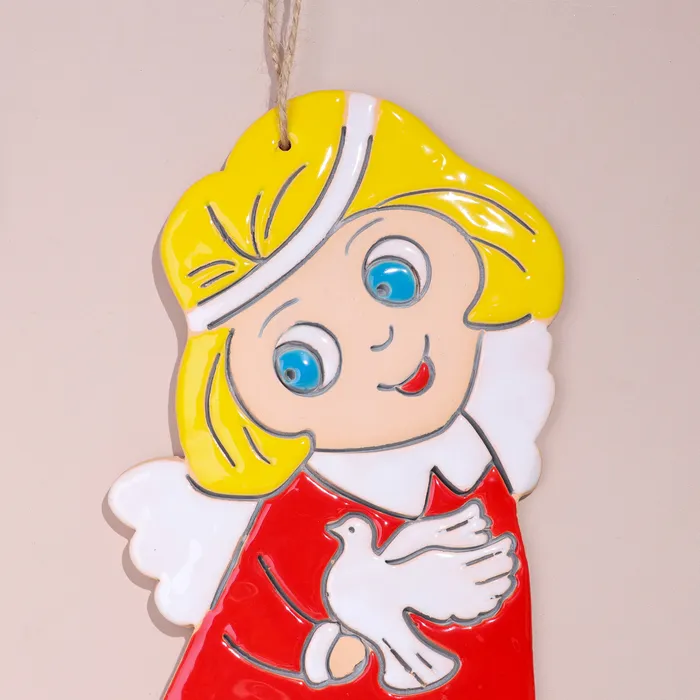 Панно "Ангел с голубем", 18х8 см, майолика