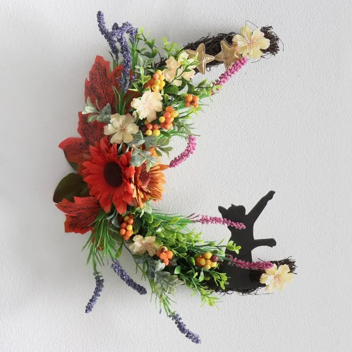 Панно дерево "Кошка на месяце, осенний букет" 25х30 см — Характеристики
