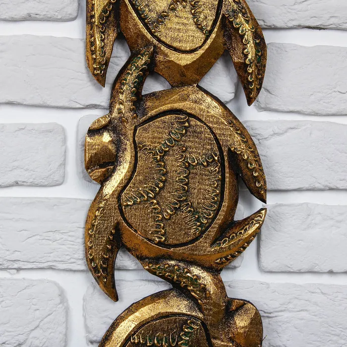 Панно дерево "Золотые черепашки" 96х16х1,5 см