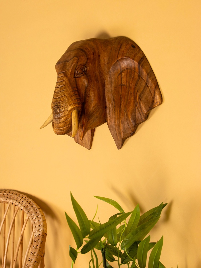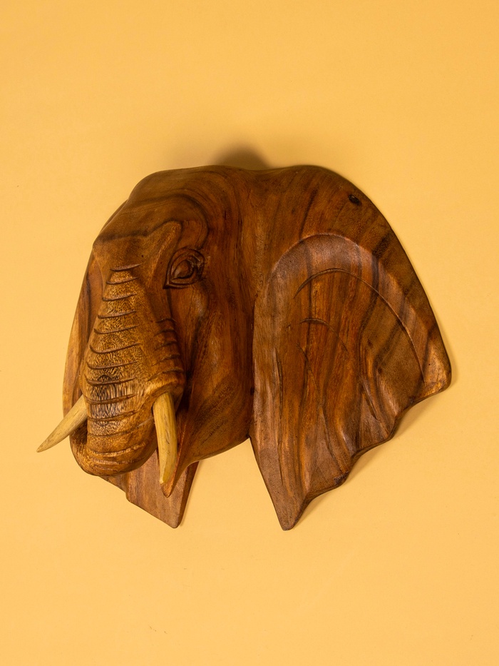 Панно «Голова слона», 40×15×30 см, дерево суар, коричневое