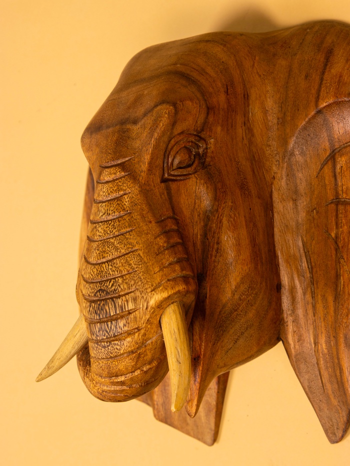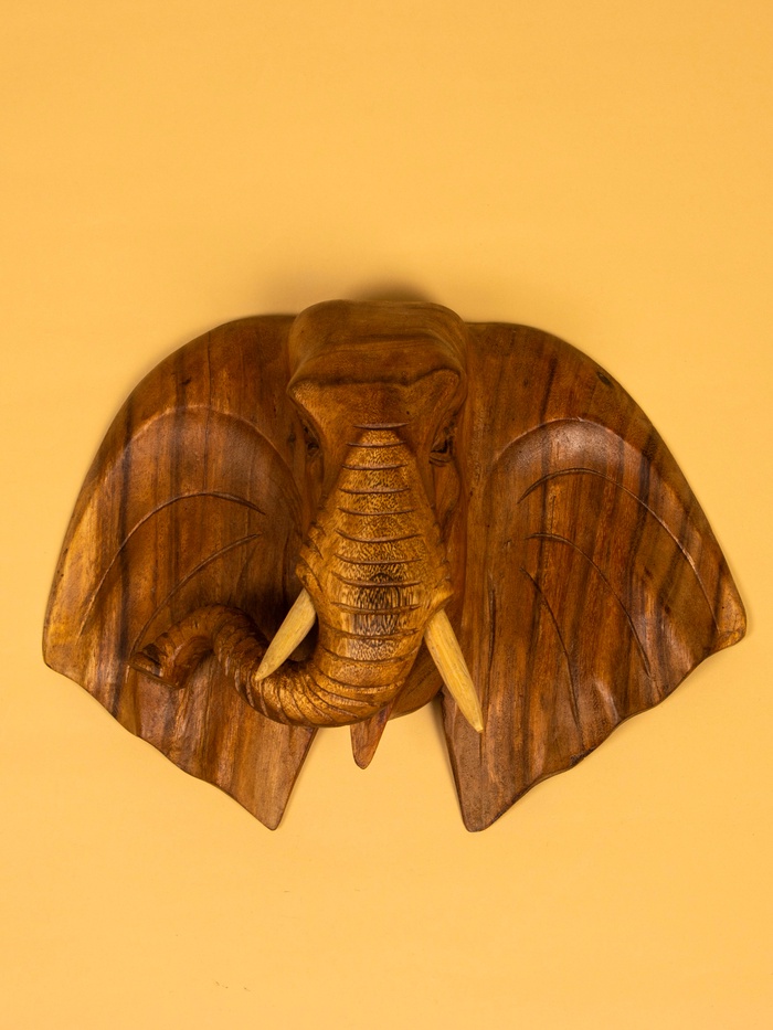 Панно «Голова слона», 40×15×30 см, дерево суар, коричневое — Характеристики