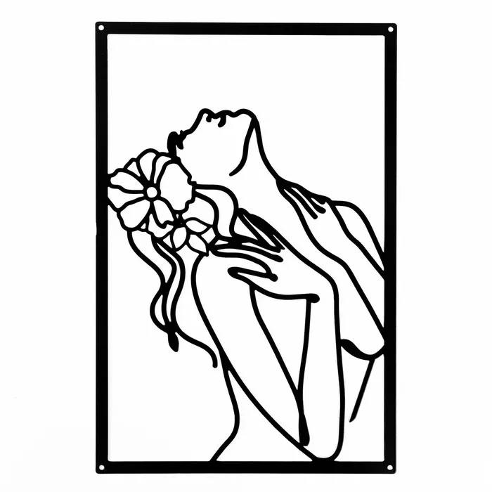 Панно интерьерное металл "Девушка с цветком в волосах" чёрное 30х45 см