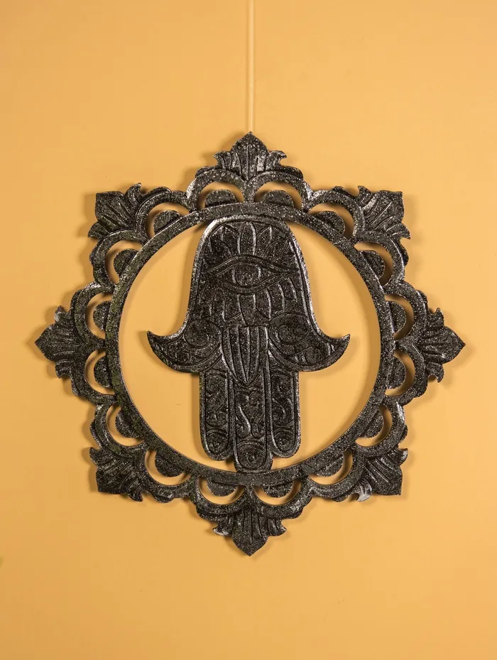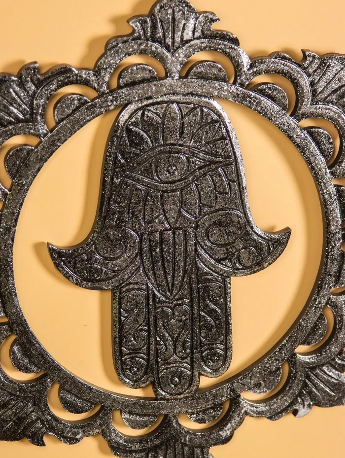 Панно "Хамса" МДФ, 40х40х1 см, цв. серебро/чёрный