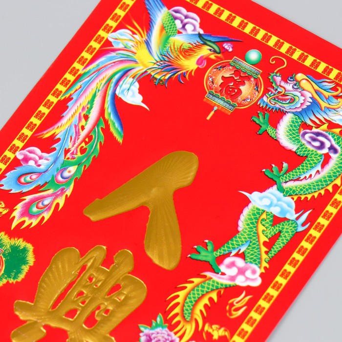 Декор выполнен в золотисто-красной гамме, где каждый цвет несёт свою энергетику: золотой ассоциируется с достатком и успехом, а красный добавляет жизненную силу и страсть к достижению целей. Прямоугольная форма обеспечивает строгость линий и простоту монтажа, что особенно важно при работе с вертикальными поверхностями.