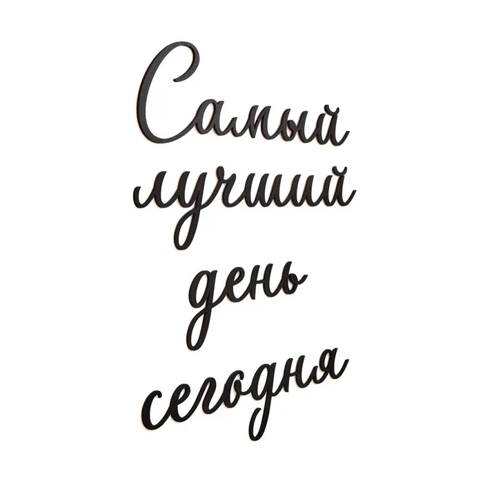 Панно настенное - это прекрасный способ добавить в интерьер вашего дома неповторимый декор. Это модульная картина, которая может использоваться как настенная декорация для спальни, гостиной или кухни. Оригинальный дизайн декорации придаст изюминку вашей комнате, панно в виде надписи "Самый лучший день сегодня" обязательно будет мотивировать вас на свершение новых дел, будет напоминать о важности жить здесь и сейчас, не думая о том, что будет завтра. Модули, выполненные из МДФ (древесноволокнистой плиты), можно соединять между собой, чтобы создавать уникальные и красивые настенные декорации. Использование древесных модулей в декоре стен позволяет создать атмосферу уюта в вашем доме. Подвесная декорация подойдет для дома в любом стиле: будь то скандинавский, лофт или эко. В зависимости от поверхности стен для крепления декора можно использовать двухсторонний скотч, жидкие гвозди или горячий клей.