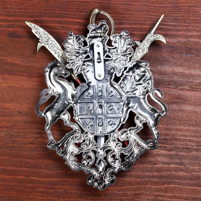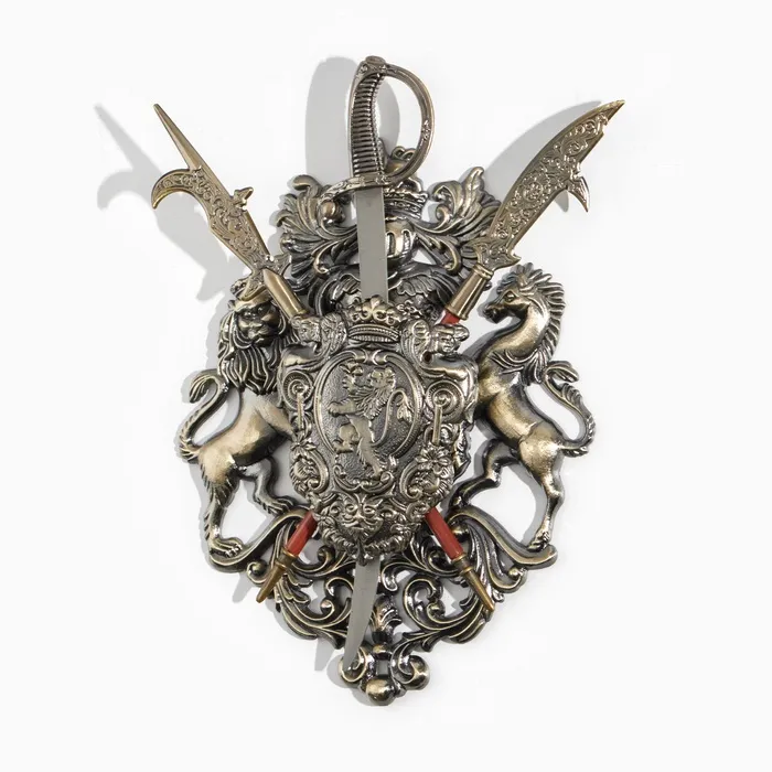- Элегантный дизайн: Геральдический мотив с львом и шпагами символизирует мужество и защиту, создавая атмосферу силы и уверенности.