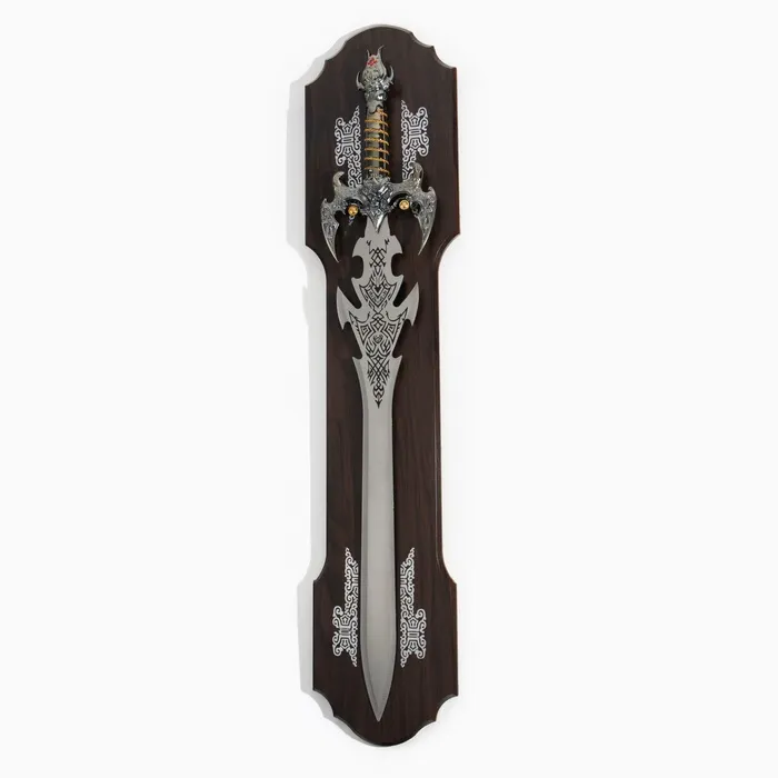 Панно на стену «Макет оружия: сувенирный меч на планшете. Дракон», декор настенный, резное лезвие, золотая рукоять — Характеристики