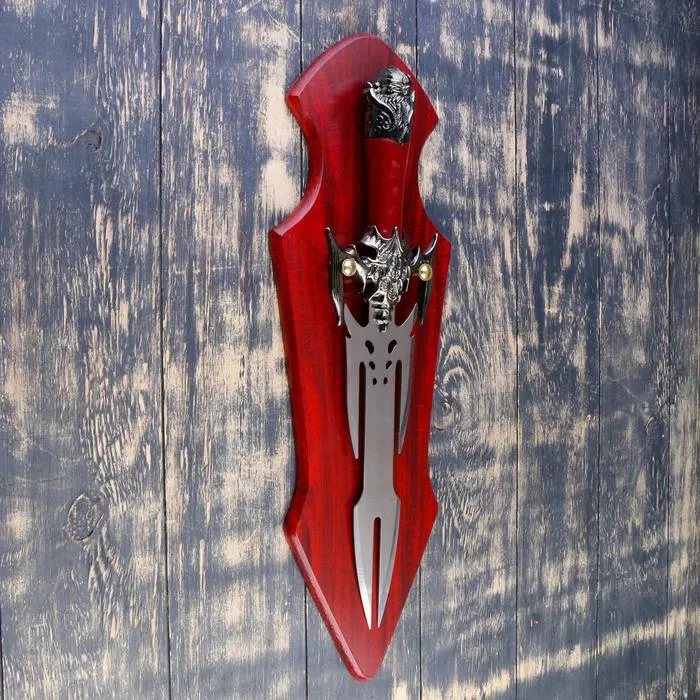 Панно на стену «Макет оружия: сувенирный меч на планшете. Голова дракона», декор настенный, резное лезвие
