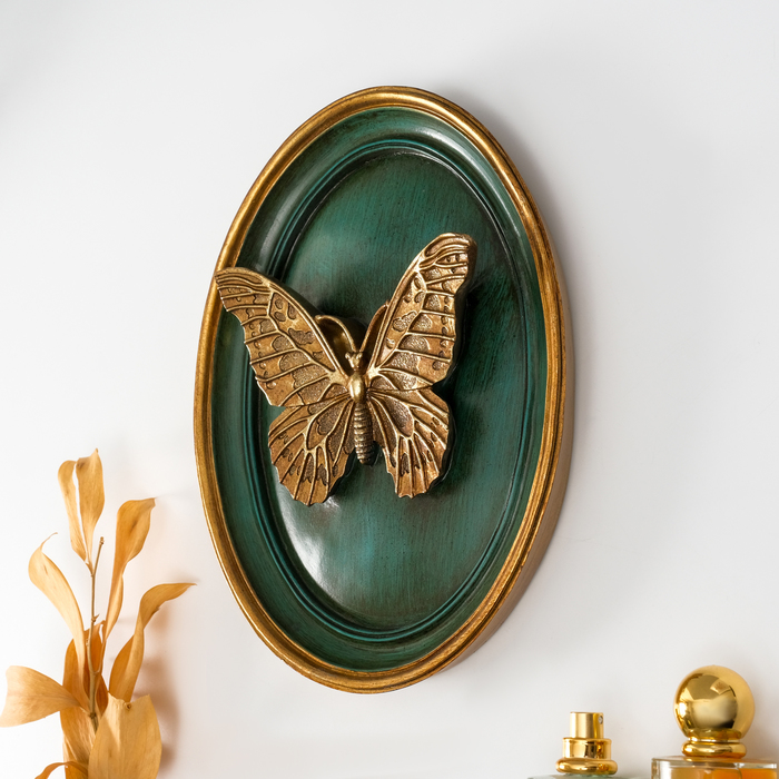 Панно настенное «Бабочка», полистоун, декор, тёмно-зелёный, 20×4×26 см