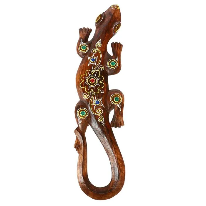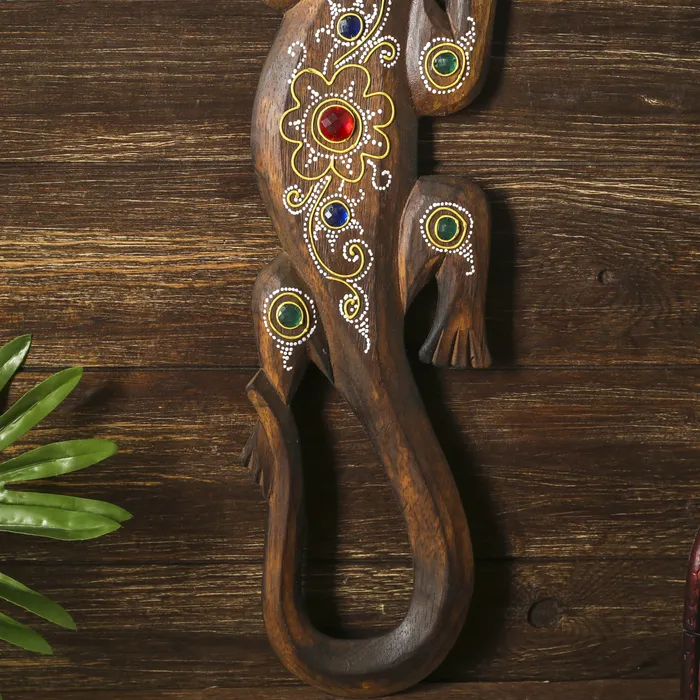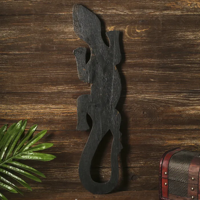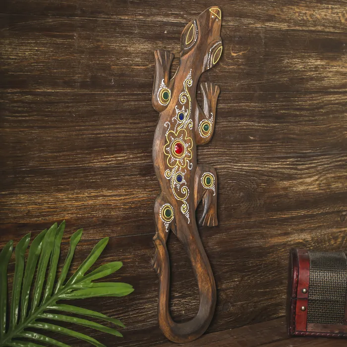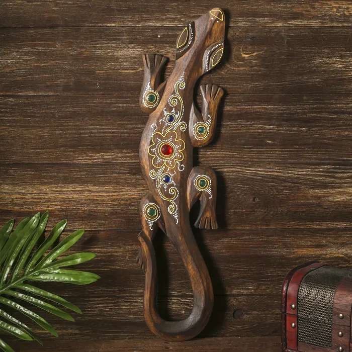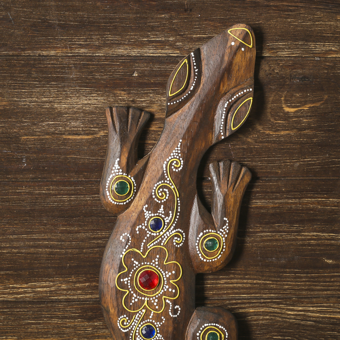 Панно настенное "Геккон с цветочным узором" дерево 1x12x50 см