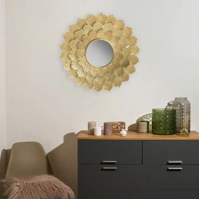 Декор настенный с зеркалом «Цветок. Сахара», панно металл под золото, 78.7×78.7×3.8 см