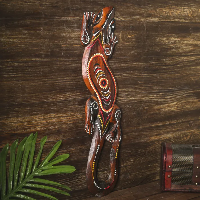 Панно настенное "Геккон цветной" дерево 20х6х1 см