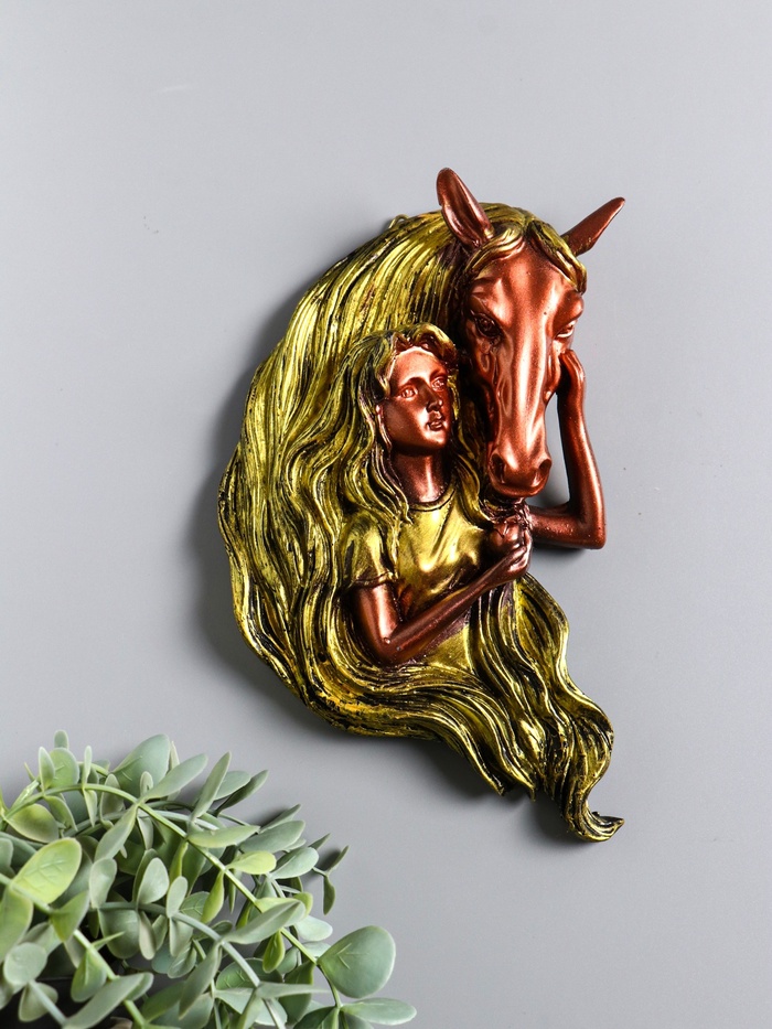 Это настенное панно с девушкой и лошадью создаёт в доме особенную атмосферу. Композиция, застывшая в полистоуне, передаёт тонкую связь между человеком и животным, добавляя интерьеру глубины и душевного тепла.