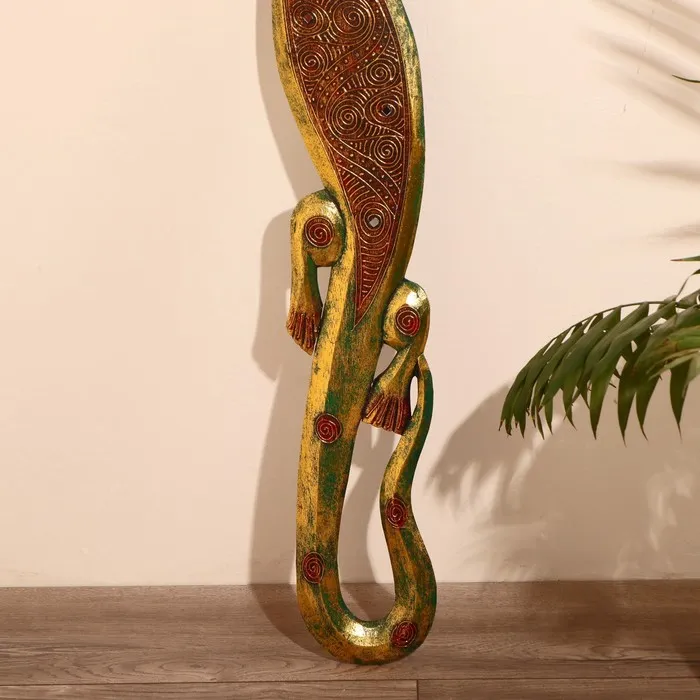 Панно настенное "Геккон с цветочным узором" дерево 1x12x50 см