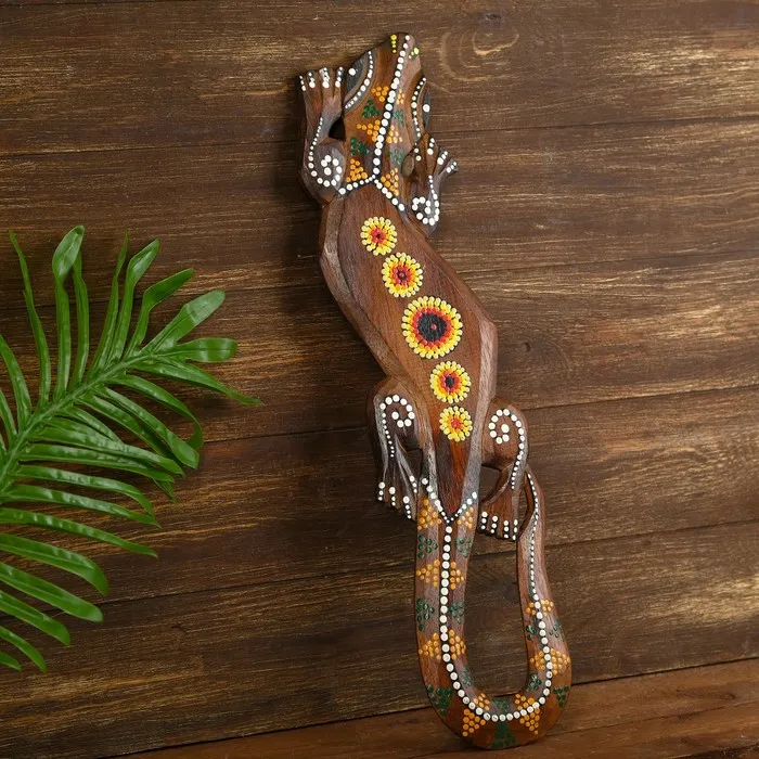 Панно настенное "Геккон цветной" дерево 20х6х1 см