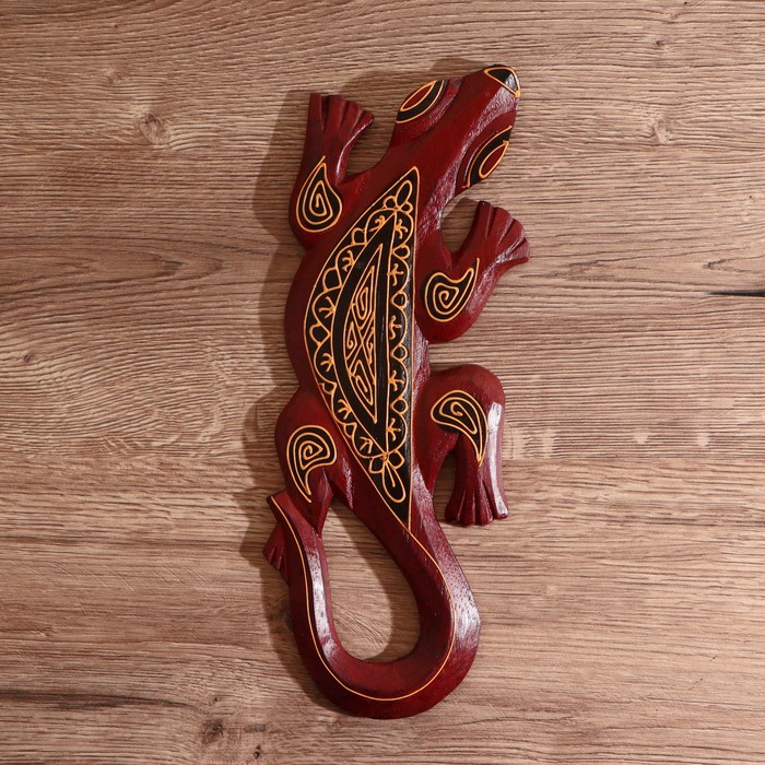 Панно настенное дерево "Геккон бордовый с орнаментом" 1х11х30 см
