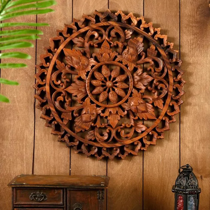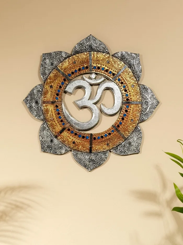 Панно резное «ОМ», 40×40×0.6 см, золотой край