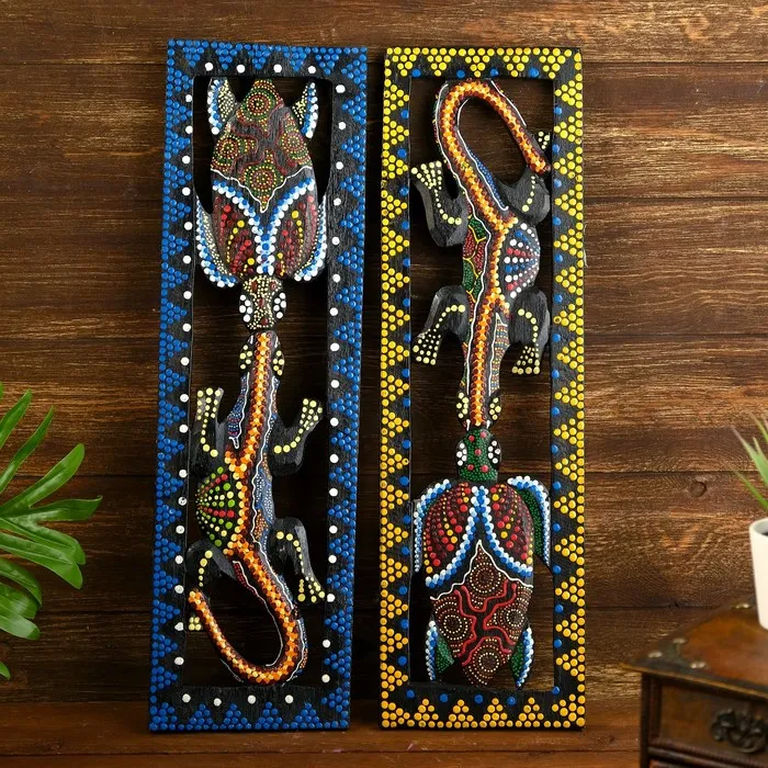 Панно "Черепашка и ящерица" дерево 50х15х1 см МИКС