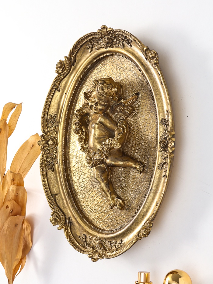 Это настенное панно с ангелом — образец изящного декора, где классическая духовная символика обретает современное воплощение. Изделие из полистоуна с тонкой позолотой создаёт в интерьере атмосферу умиротворения, света и нежной защиты. Идеальный акцент для спальни, гостиной или пространства для размышлений.