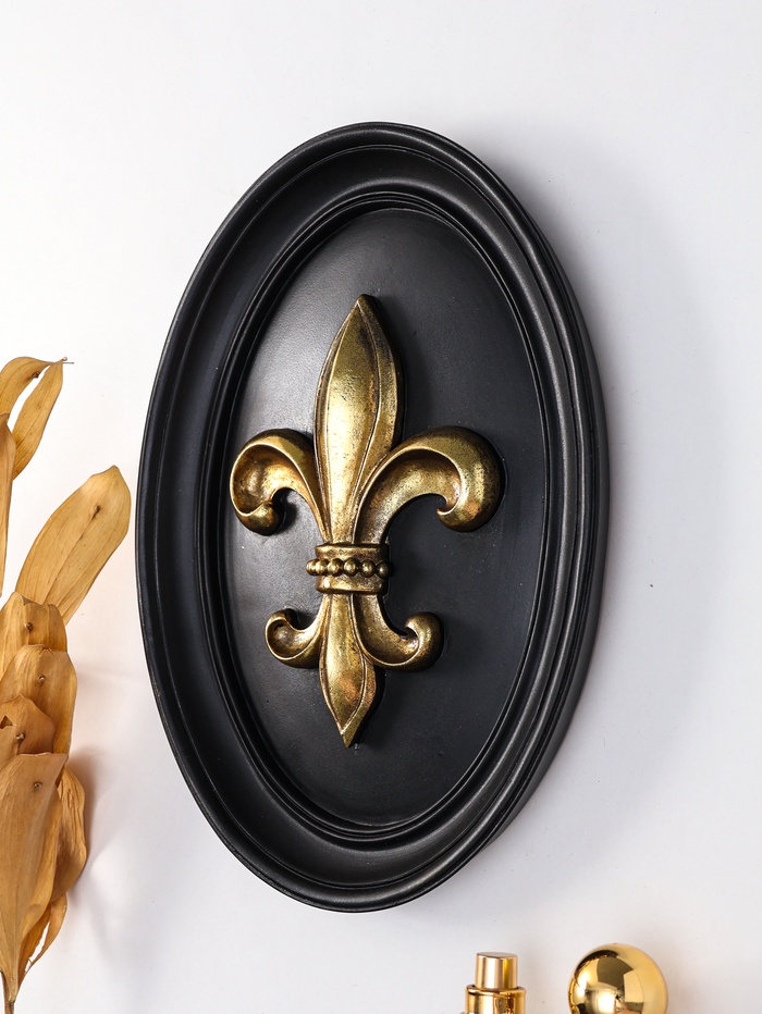 Это настенное панно с геральдической лилией — символ благородства и изящной силы. Его лаконичная форма и контраст чёрного с золотом создают акцент утончённого вкуса, подчёркивая статус интерьера. Изделие подходит для кабинета, гостиной или парадной зоны, добавляя пространству историческую глубину и визуальную завершённость.